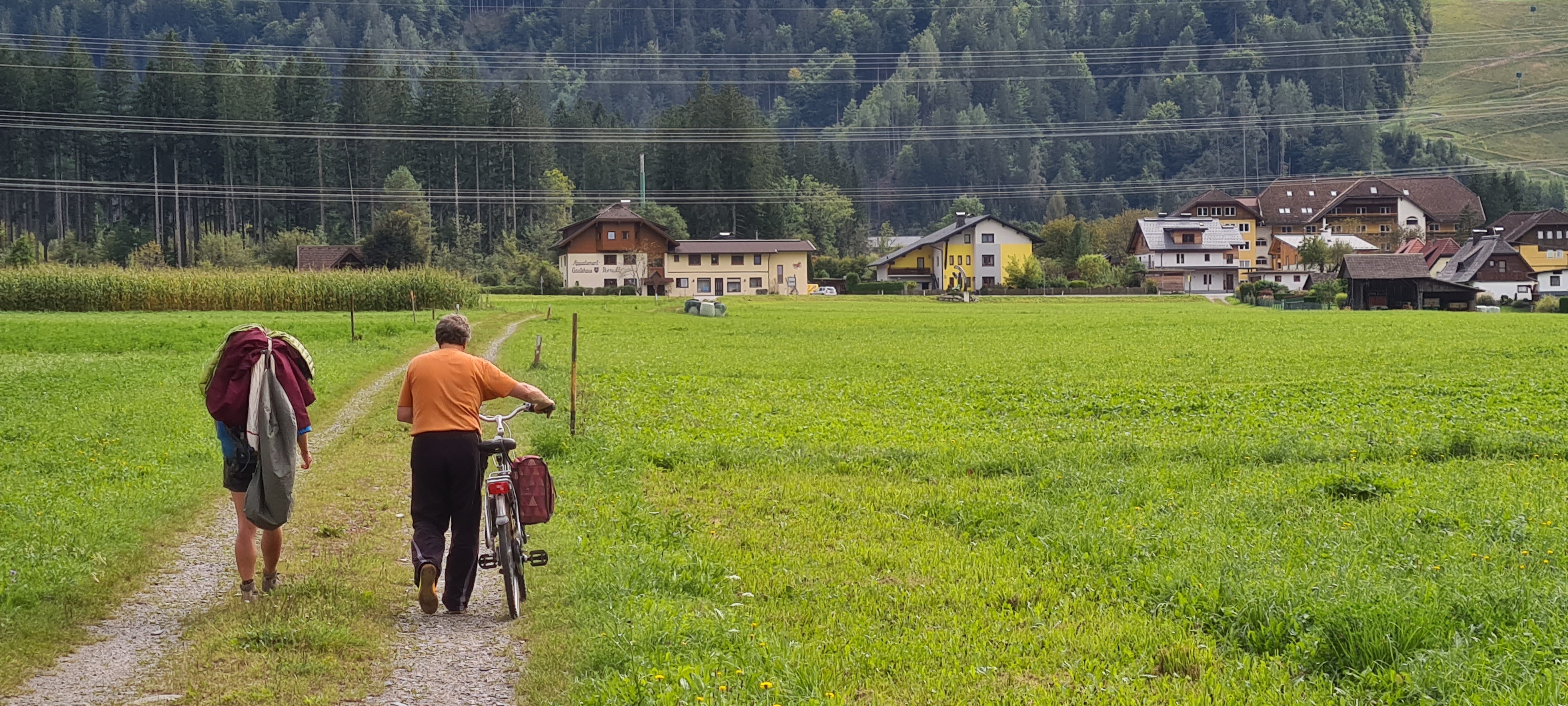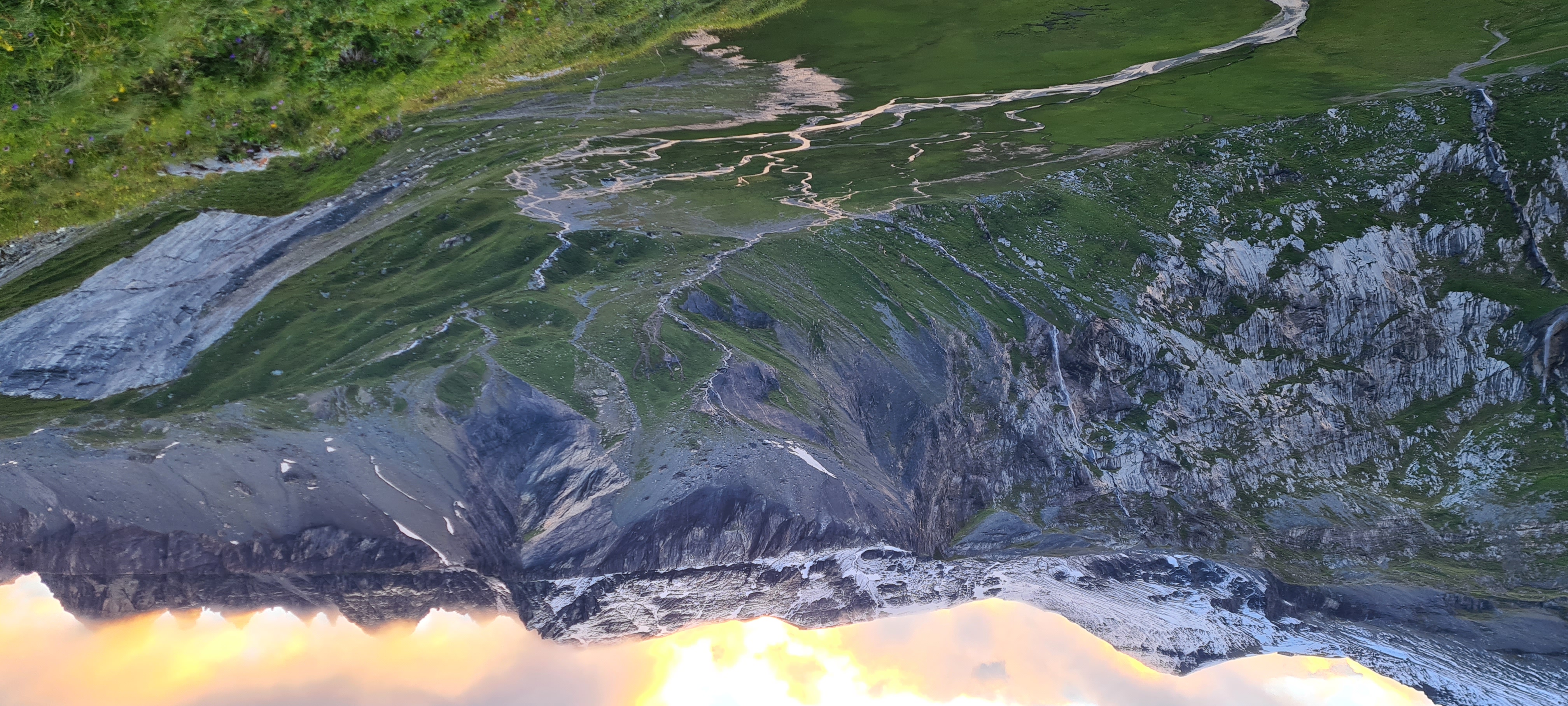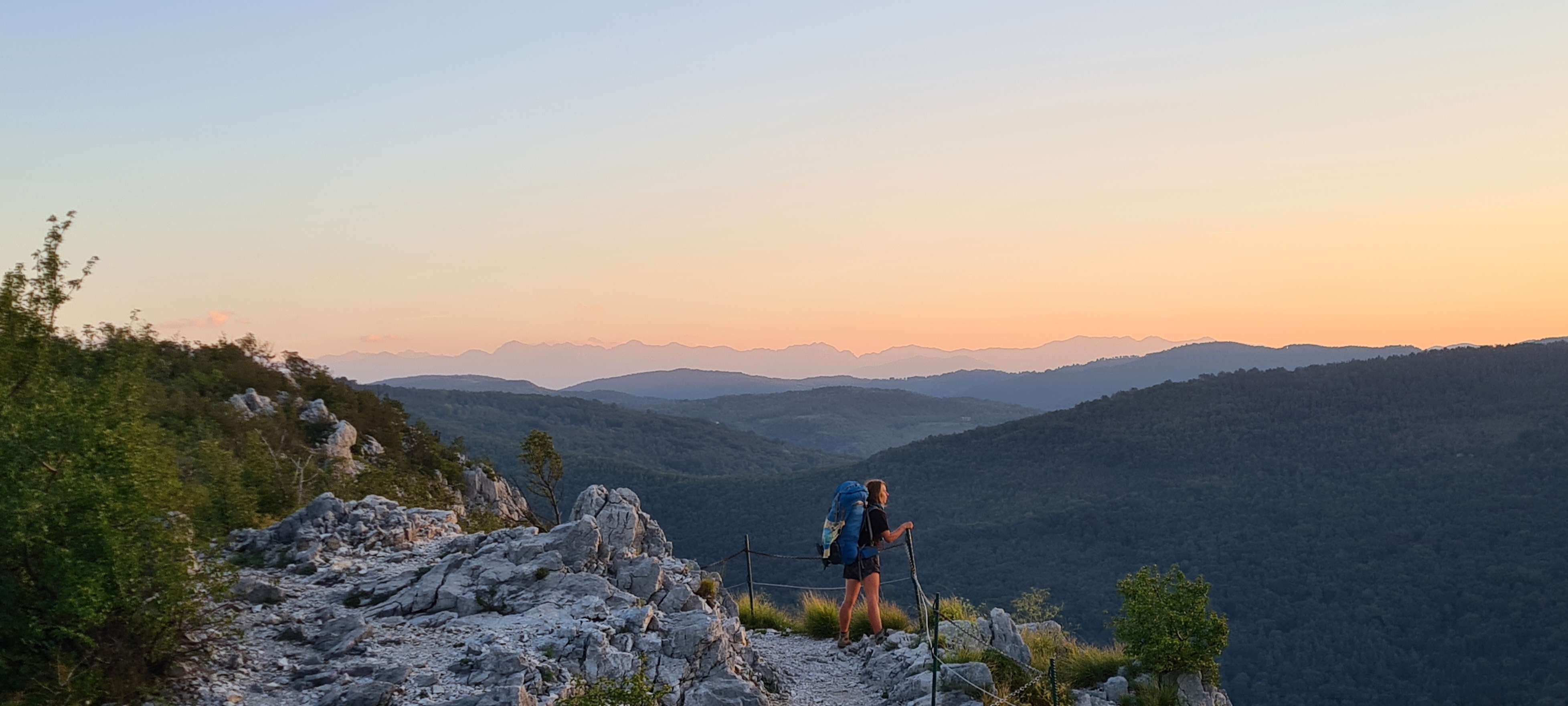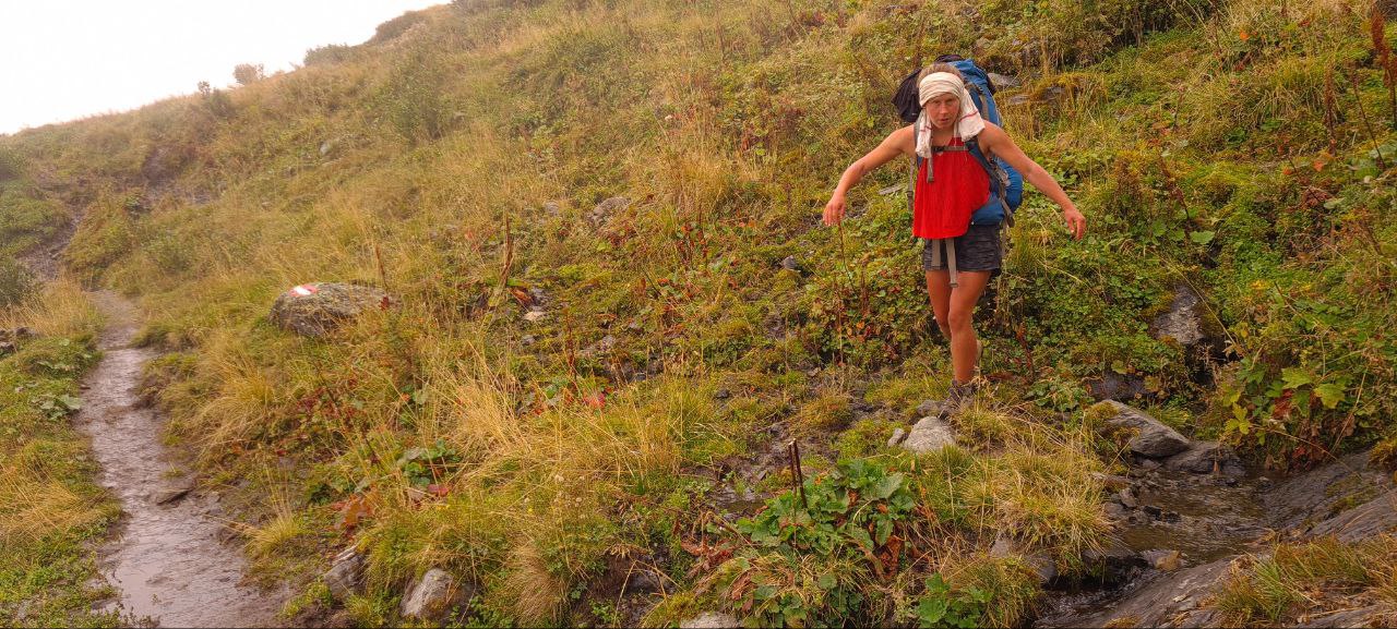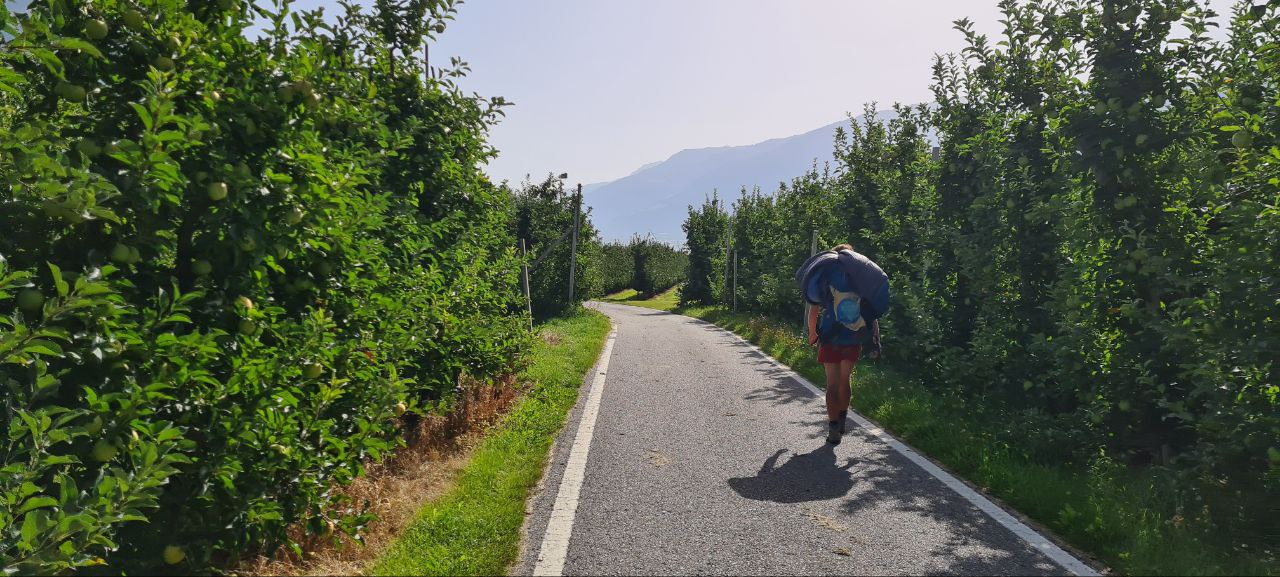 Schlafen Laufen zu Fuß von Zürich nach Trieste 18-08-2023 Wir überqueren 5 Pässe, 4 Staatsgrenzen und erklimmen über 30.000 Höhenmeter. Im Juli regnet es sehr viel, weswegen die Bäche voll und die Wege fliessend sind Hinter dem Berg eröffnet sich uns eine neue Landschaft Über 2000 m laufen wir am ersten Tag hoch Mit Schnee ist am Folgetag zu rechnen, drum laufen wir zügig weiter der Himmel reißt auf und gibt eine klare Sicht frei Wunder muss es geben! Trutg dil Flem Unsere erste Passüberquerung führte ins Unesco Weltnaturerbe Sardona über unzählige Brücken und Schluchten Nicht stehen bleiben steht auf dem Schild Scoul Im Unterengadin führt ein 20 km langer Weg durchs Tal zum nächsten Pass Weite Bäume, Flora, Fauna, Kühe und nur 2 Menschen Morgens früh Pass de Costainas Wir sehen das erste Mal italienische Berge Wege wie dieser sind uns eine Wohltat Sturmmahnmal Die Klimaerhitzung hinterlässt Spuren Durch Weintrauben und Äpfel führt uns ein Höhenweg nach Meran Über Meran sehen wir das erste Mal seit einem Monat wieder eine Stadt Vinschgau Über vier Tage wandern wir durch Plantagen, vorbei an Lagerhallen und Höfen. Mehr als 20,5 Millionen Apfelbäume sollen hier Früchte tragen Besuch Drei Tage sind wir zu dritt unterwegs Dörfer und Wallfahrt in Kärtnen winzig klein kommen wir uns hier vor. Und trotzdem nicht verloren Spätsommer Mittlerweile ziehen wir wieder sonnige den schattigen Wegen vor Hoch-höher-höchstes Glück der Erde immer früher wird es dunkel - oder rosa, violett, orange, rot, goldig unter freiem Himmel drüben suche ich einen Schlafplatz ohne Hubbel Duft von Bäumen und Wiesen Via Alpina Wenn abends die Wege leer und Hütten voll sind, fühlen wir uns am allerwohlsten hier Pragser Wildsee Hier drehen täglich bis zu 9000 Menschen ihre Runden Stimmungsvoll wenn im Tal der Nebel hängt und wir dadrüber stehen Aber manchmal klettern wir in den Nebel rein... Nass und nur kalt, wenn wir stehen bleiben In den Wolken Die Sicht hier oben wäre sicher auch schön gewesen Gore Tex schützt uns nicht vor Nässe Herbstlich fühlt es sich schon im September an Jakob gabelt uns auf und führt uns zu seiner Pension, wo er uns einlädt im eigenen Theater zu übernachten. Im Tischtennis schlägt er uns haushoch Mühle Wiegele Am Ende des Weges erwartet uns unser wohl ausgefallenster Übernachtungsort mit langer Tradition und offenem Geist Dreiländereck In Italien und Österreich waren wir schon, in Slowenien noch nie Soča Das wilde Soča-Tal erleben wir in allen Wetterstimmungen Türkis ist die glasklare Farbe der strömenden Soča Wegsperrungen überraschen uns immer öfter Straßen Lärm und Gestank getränkt von Regen. Da müssen wir durch Slowenien Wir sehen von wo wir gekommen sind Verbrannter Wald Hier entsteht eine ganz eigene Biodiversität 1 Meter über dem Meeresspiegel der Rilkeweg führt uns entlang der Küste in Richtung Trieste Nachtwanderung Am Ende unserer langen Wanderung können wir nicht aufhören und laufen durch bis zum Sonnenaufgang mit abschließendem Vollmondbad die Dolomiten beeindrucken uns von allen Perspektiven der Wald beherbergt alles, was Lebewesen zum Leben brauchen Beinnah am Fuße des Felsens Elm Das Martin-Vosseler-Haus ist unser kraftgebender Ausgangspunkt in die Alpen Permawalk Claudio und Linntje Trieste jetzt steigen wir in den Zug! Schlafen