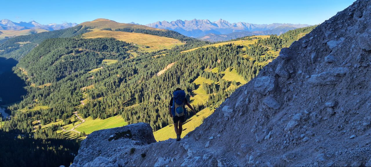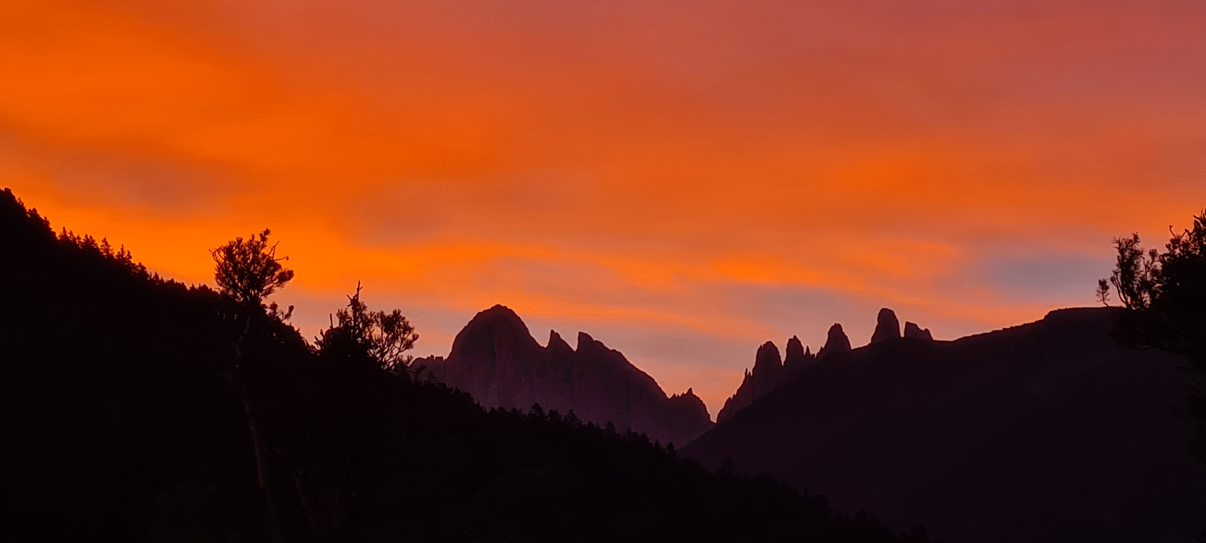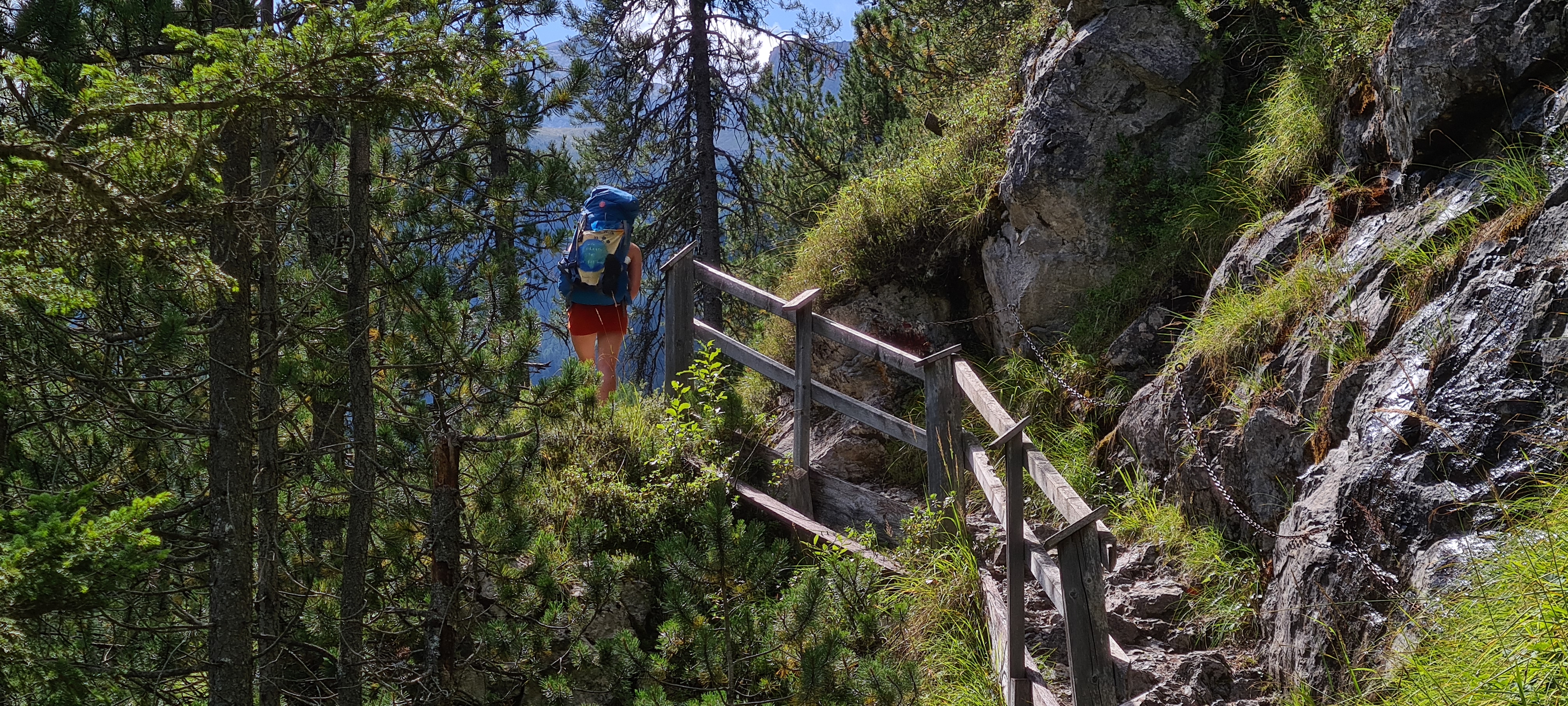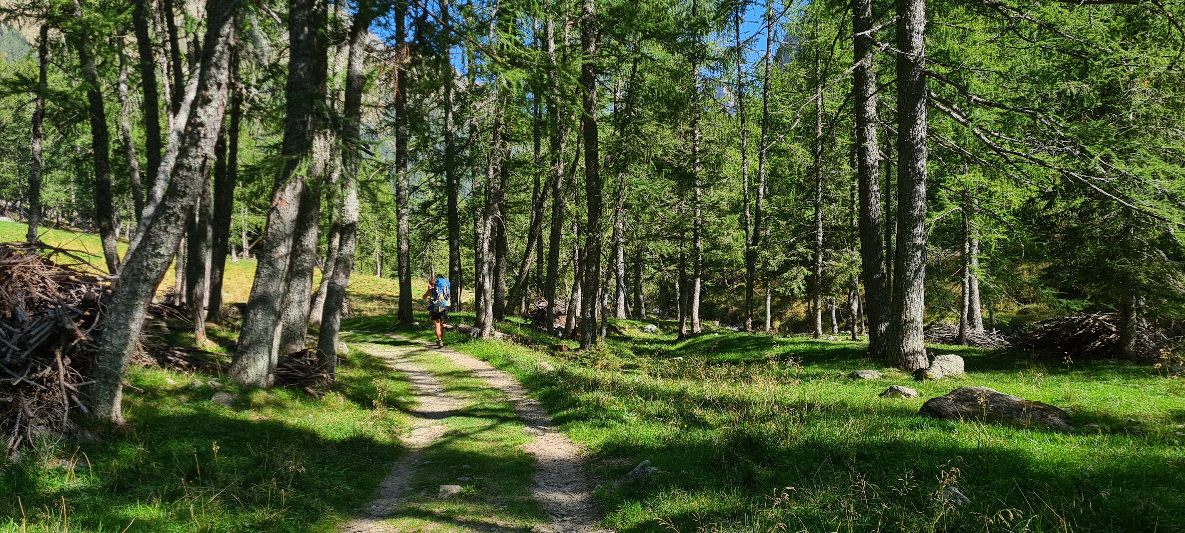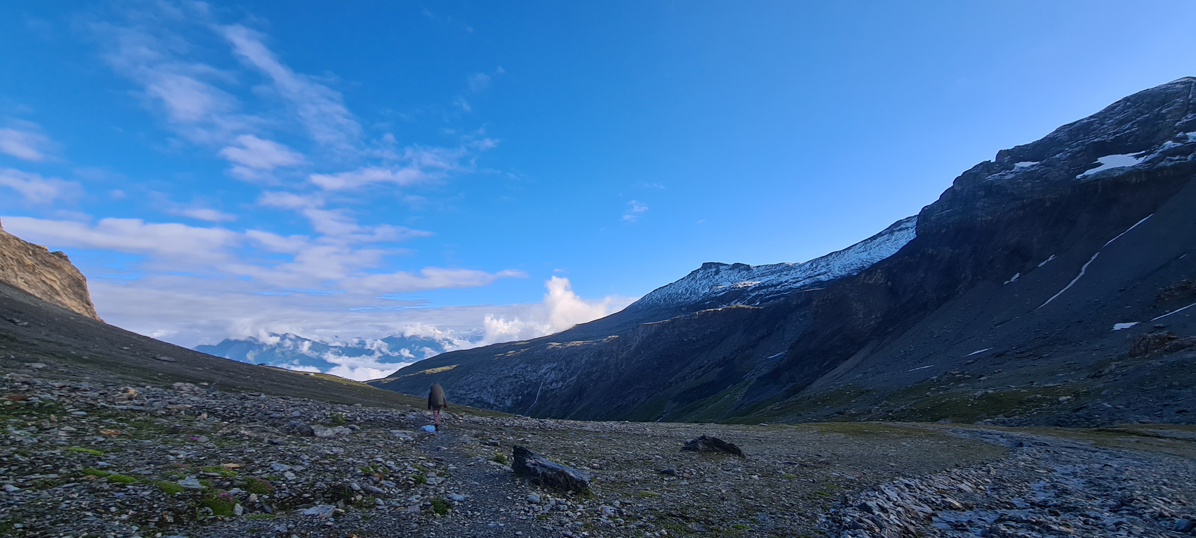 Schlafen Laufen zu Fuß von Zürich nach Trieste 18-08-2023 Wir überqueren 5 Pässe, 4 Staatsgrenzen und erklimmen über 30.000 Höhenmeter. Im Juli regnet es sehr viel, weswegen die Bäche voll und die Wege fliessend sind Hinter dem Berg eröffnet sich uns eine neue Landschaft Über 2000 m laufen wir am ersten Tag hoch Mit Schnee ist am Folgetag zu rechnen, drum laufen wir zügig weiter der Himmel reißt auf und gibt eine klare Sicht frei Wunder muss es geben! Trutg dil Flem Unsere erste Passüberquerung führte ins Unesco Weltnaturerbe Sardona über unzählige Brücken und Schluchten Nicht stehen bleiben steht auf dem Schild Scoul Im Unterengadin führt ein 20 km langer Weg durchs Tal zum nächsten Pass Weite Bäume, Flora, Fauna, Kühe und nur 2 Menschen Morgens früh Pass de Costainas Wir sehen das erste Mal italienische Berge Wege wie dieser sind uns eine Wohltat Sturmmahnmal Die Klimaerhitzung hinterlässt Spuren Durch Weintrauben und Äpfel führt uns ein Höhenweg nach Meran Über Meran sehen wir das erste Mal seit einem Monat wieder eine Stadt Vinschgau Über vier Tage wandern wir durch Plantagen, vorbei an Lagerhallen und Höfen. Mehr als 20,5 Millionen Apfelbäume sollen hier Früchte tragen Besuch Drei Tage sind wir zu dritt unterwegs Dörfer und Wallfahrt in Kärtnen winzig klein kommen wir uns hier vor. Und trotzdem nicht verloren Spätsommer Mittlerweile ziehen wir wieder sonnige den schattigen Wegen vor Hoch-höher-höchstes Glück der Erde immer früher wird es dunkel - oder rosa, violett, orange, rot, goldig unter freiem Himmel drüben suche ich einen Schlafplatz ohne Hubbel Duft von Bäumen und Wiesen Via Alpina Wenn abends die Wege leer und Hütten voll sind, fühlen wir uns am allerwohlsten hier Pragser Wildsee Hier drehen täglich bis zu 9000 Menschen ihre Runden Stimmungsvoll wenn im Tal der Nebel hängt und wir dadrüber stehen Aber manchmal klettern wir in den Nebel rein... Nass und nur kalt, wenn wir stehen bleiben In den Wolken Die Sicht hier oben wäre sicher auch schön gewesen Gore Tex schützt uns nicht vor Nässe Herbstlich fühlt es sich schon im September an Jakob gabelt uns auf und führt uns zu seiner Pension, wo er uns einlädt im eigenen Theater zu übernachten. Im Tischtennis schlägt er uns haushoch Mühle Wiegele Am Ende des Weges erwartet uns unser wohl ausgefallenster Übernachtungsort mit langer Tradition und offenem Geist Dreiländereck In Italien und Österreich waren wir schon, in Slowenien noch nie Soča Das wilde Soča-Tal erleben wir in allen Wetterstimmungen Türkis ist die glasklare Farbe der strömenden Soča Wegsperrungen überraschen uns immer öfter Straßen Lärm und Gestank getränkt von Regen. Da müssen wir durch Slowenien Wir sehen von wo wir gekommen sind Verbrannter Wald Hier entsteht eine ganz eigene Biodiversität 1 Meter über dem Meeresspiegel der Rilkeweg führt uns entlang der Küste in Richtung Trieste Nachtwanderung Am Ende unserer langen Wanderung können wir nicht aufhören und laufen durch bis zum Sonnenaufgang mit abschließendem Vollmondbad die Dolomiten beeindrucken uns von allen Perspektiven der Wald beherbergt alles, was Lebewesen zum Leben brauchen Beinnah am Fuße des Felsens Elm Das Martin-Vosseler-Haus ist unser kraftgebender Ausgangspunkt in die Alpen Permawalk Claudio und Linntje Trieste jetzt steigen wir in den Zug! Schlafen